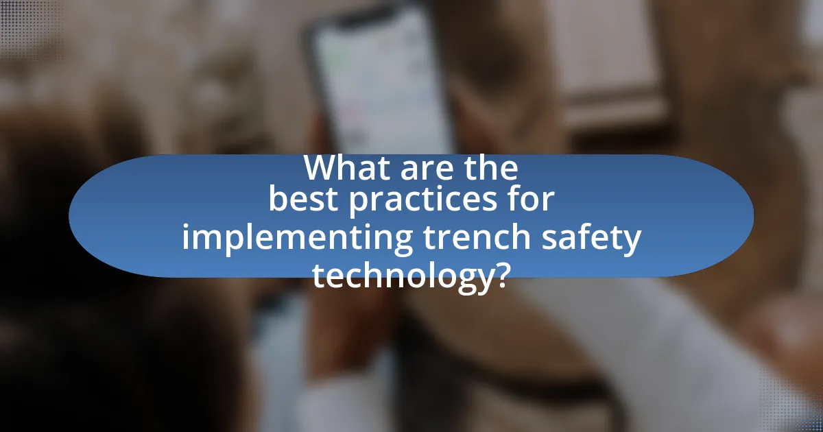 The best practices for implementing trench safety technology include conducting thorough risk assessments, utilizing advanced monitoring systems, and ensuring proper training for workers. Risk assessments identify potential hazards associated with trench work, allowing for the selection of appropriate safety measures. Advanced monitoring systems, such as real-time soil movement sensors and gas detection devices, provide continuous data to prevent accidents. Furthermore, training programs that emphasize the use of safety technology and emergency response protocols enhance worker preparedness and safety compliance. These practices are supported by industry standards, such as those outlined by the Occupational Safety and Health Administration (OSHA), which emphasize the importance of safety technology in reducing trench-related incidents.