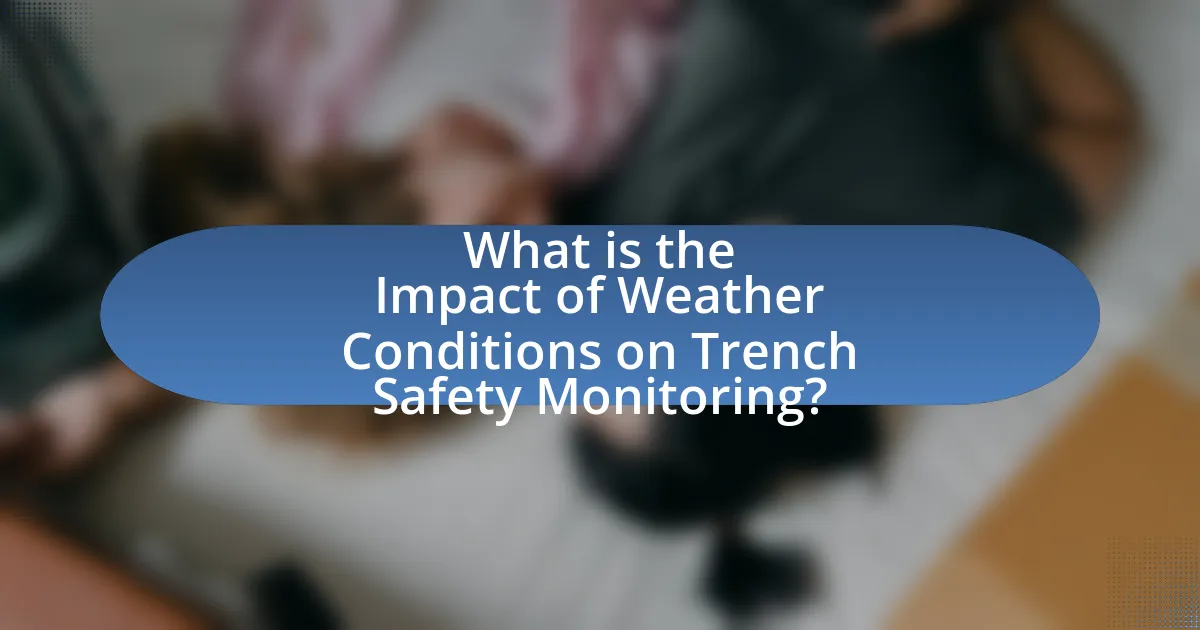 Weather conditions significantly impact trench safety monitoring by influencing soil stability, visibility, and worker safety. For instance, heavy rainfall can lead to soil saturation, increasing the risk of trench collapses due to reduced cohesion in the soil. According to the Occupational Safety and Health Administration (OSHA), wet conditions can exacerbate hazards, necessitating more frequent monitoring and adjustments to safety protocols. Additionally, extreme temperatures can affect the physical condition of workers, impairing their ability to respond to emergencies effectively. Therefore, understanding and adapting to weather conditions is crucial for maintaining safety in trench operations.